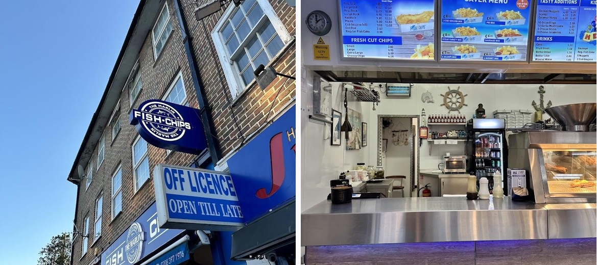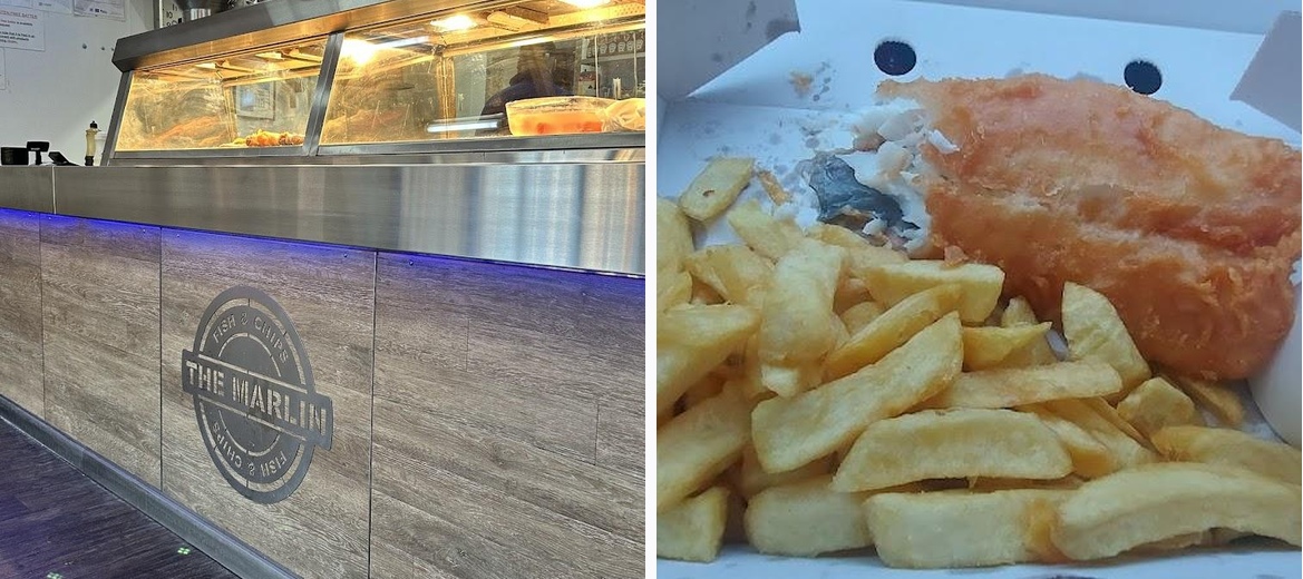 The Marlin Chessington focuses on traditional fish and chips, offering a variety of options including cod, sausages, pies, and burgers.